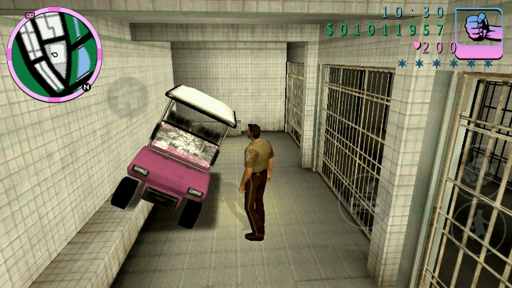 然后再去这里的警局,(可以顺便变成警察)。来到监狱,刷出一辆高尔夫球车。然后把它开上那条坎上。