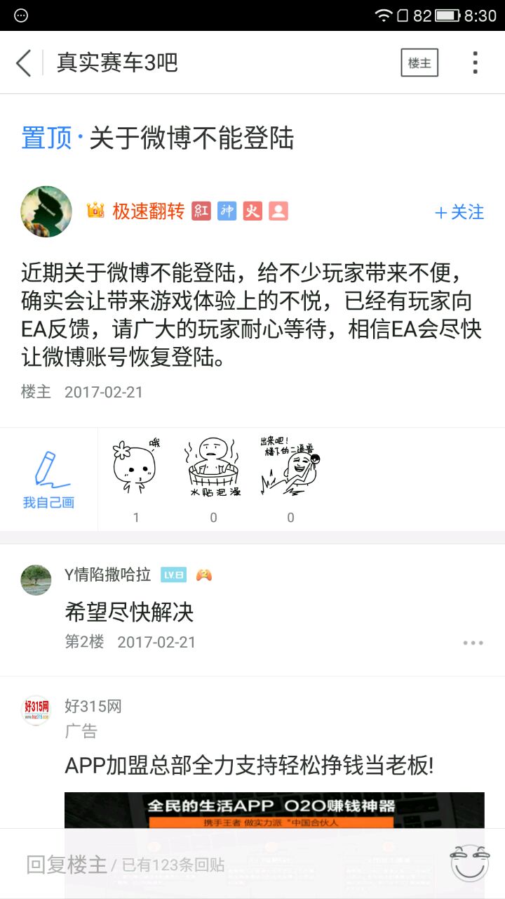 真实赛车3更新后年后无法登陆微博,导致不能上传进度与下载云端进度。