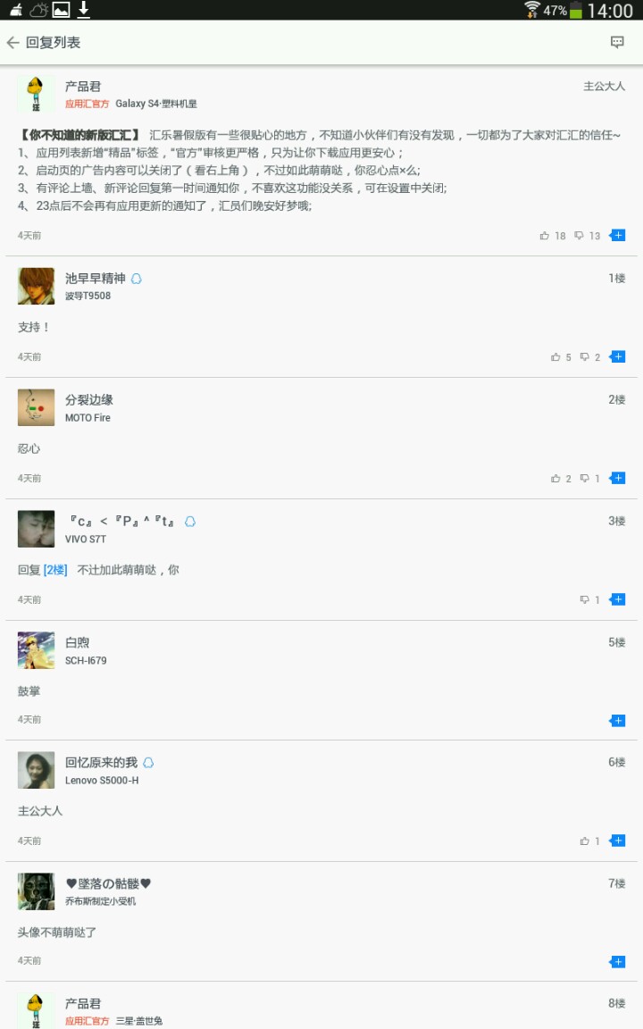 2014-08-27 [有回复] 联想A690淡定~淡定~,我是不会在意只提到骷髅一个人的名字的对吧小编~,我勒个去,小编算你狠,为了招揽汇员你,你,你居然说群里有福利,这个彩蛋连我都不知道 ,你们怎么都不告诉我,话说福利是什么?