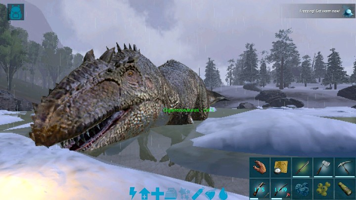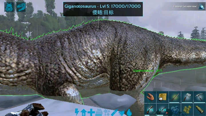 大概用了40枪麻醉枪跟40箭麻醉箭最近他就暈了, 给他吃了500罐 麻醉剂, 十三塊熟大腿肉跟2塊生大腿肉享就馴服了