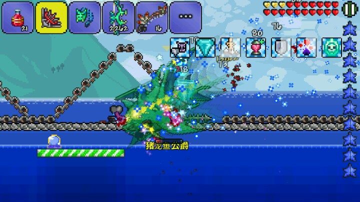 我第一次打死猪鲨是掉的暴风雨法杖。第二次才掉的猪鲨链球。有了猪鲨链球。完虐猪鲨。