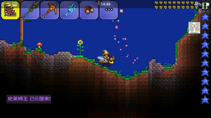 刷地图刷出了这样的奇葩地形还有终于碰到史莱姆王了不知道谁办房子建到海里去了门口还留了把剑