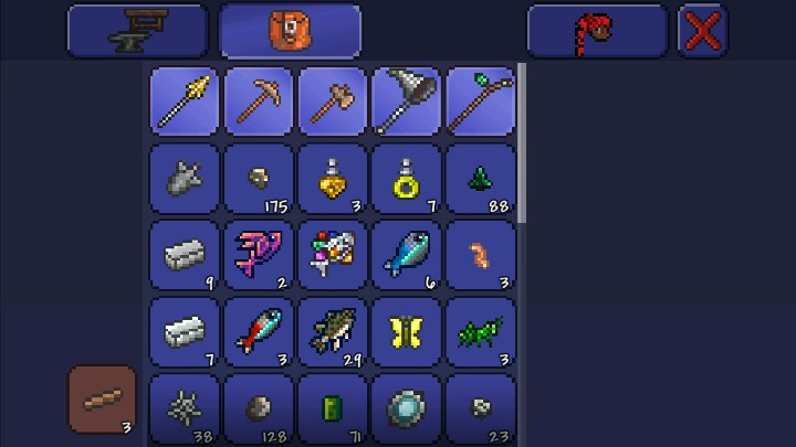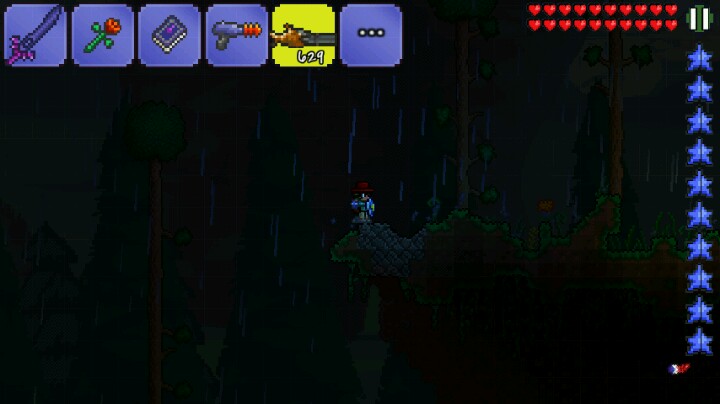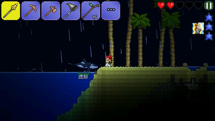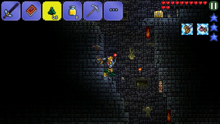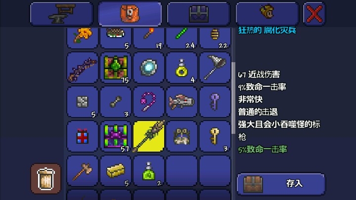 如图,把松叶块放在箱子周围,如果放在右边,就站在左边拿着松叶块狂击箱子,彪出一堆箱子之后点开背包,发现箱子就在右边,拿到装备就无敌了哈哈。不过松叶块似乎挖不掉,只能炸开。。。