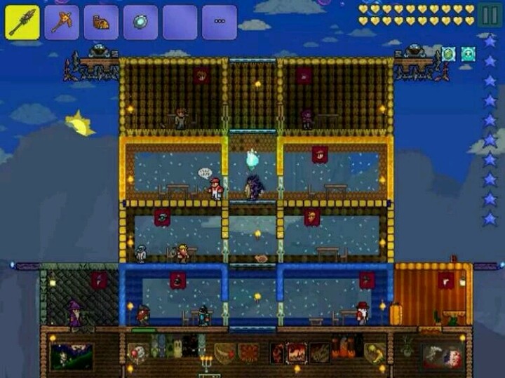 最近发现一个上天空岛和刷金币的好办法。那就是用平台和土搭上去,运气的话就搭一会儿就能看见悬空岛;搭到一定高度时会看鹰身女妖,一个女妖一般情况下掉2~3银币,刷一天至少能挣20~30银左右。从此不用担心塞钱啦!^O^