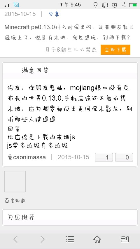 很多玩家都以为,在游戏中,对空白按,然后移动到方块身上,方块突然间被神一般的力量撸烂了,感觉到很惊奇,就确定真是bug,NO!NO!这不是bug!修正:这不是BUG,这是minecraft PE的特性,官方都说明了,就是要与PC不同。例如:PC的船可撞烂,PE却不同,怎样撞都不烂! 还有旧地图的下届反应核! 这都是PE的特性!! 特性!
