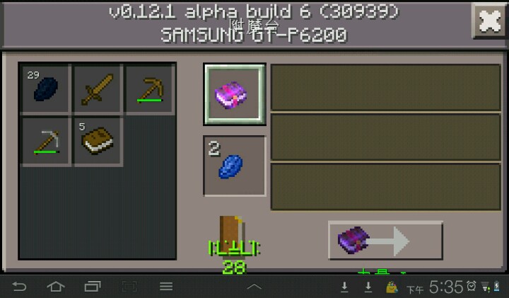 2015-08-14 SAMSUNG Galaxy Tab 7.0 Plus不知道怎么附魔的人来这边首先你需要一个附魔台,经验值,青金石,你要附魔的东西之后把你要附魔的东西放上面 下面放青金石最后在右选择你要加火焰之类附魔的东东
