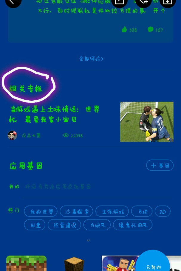 在应用汇中搜索我的世界,翻到底下的相关专栏(如图一),点开翻到(如图二)点击下载就OK啦~