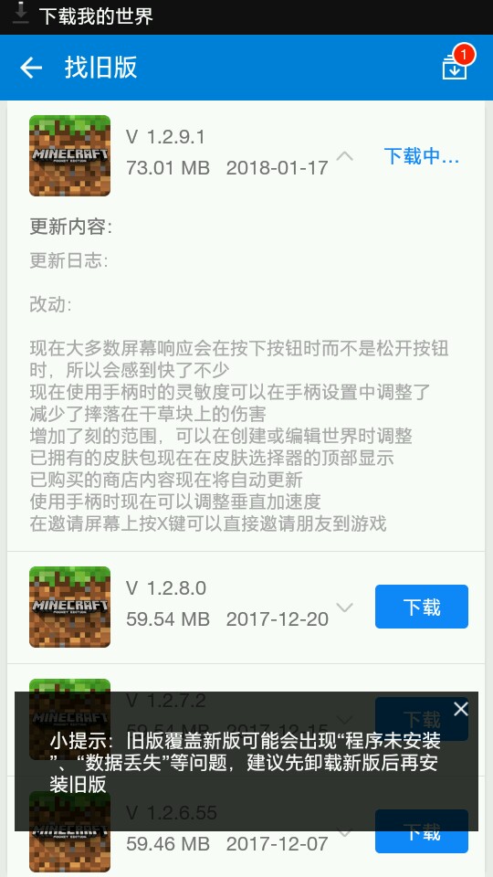 手机配置不行,玩不起1.2.10,只能玩1.2.9