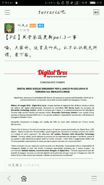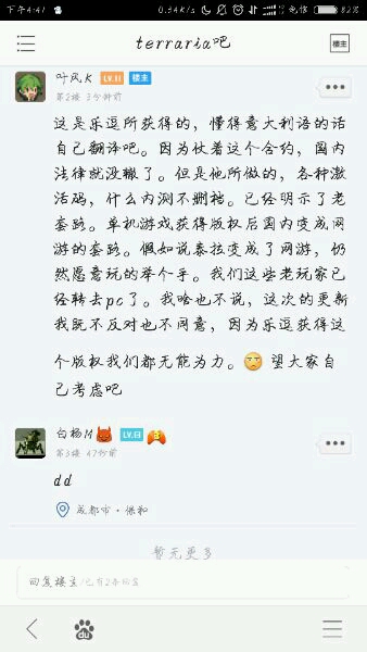 2017-07-14 [有回复] vivo Y51A醒醒!泰拉瑞亚已经不存在了
