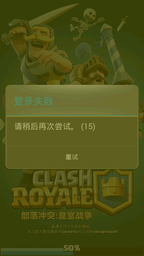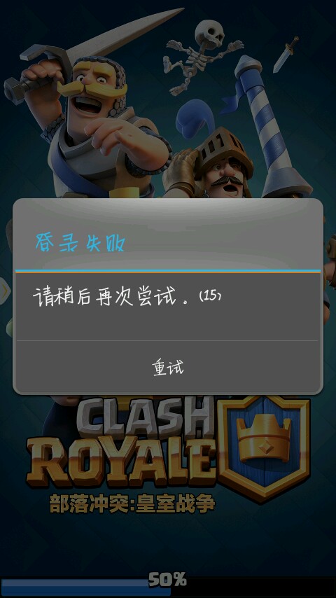 为什么我玩的部落冲突皇室战争,新版本,老是卡在百分之五十上。然后游戏重新登录,死循环。