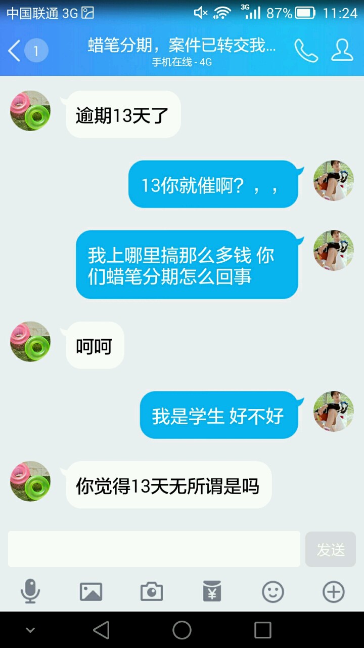 2019-06-04 [有回复] HUAWEI MT7-TL10如果有某所学校让学生下这个蜡笔分期 请慎重 没有找到工作13天 这家蜡笔分期会找到你所有的亲戚联系人 然后全部打一遍电话 慎重慎重 记住了 你所有的联系人都会呗找到 我觉得蛮坑人的