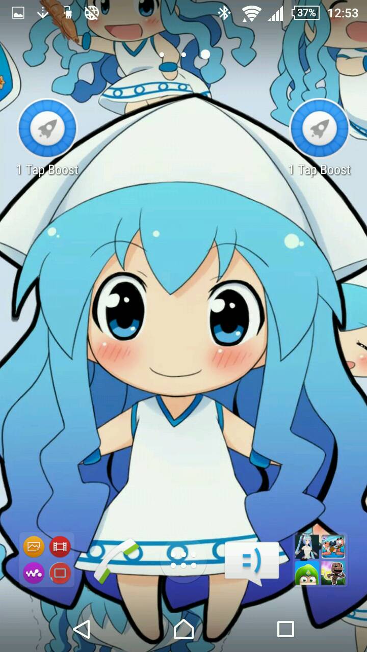 本强迫症表示不把乌贼娘搁中间咱会睡不着觉的说.锁屏,先来喷下该死的5.02系统,锁屏特效无法跟自定义锁屏图同时存在,看图3这华丽丽的效果,5.02的滑动解锁是“从暗至明”的效果,咱晚上拍的相片亮度本来就不够!也只能手动自己+点光源了,图4看起来怪怪的.图2是原图,不知道汇汇会把它压成啥样子,想要原图的留邮箱吧.