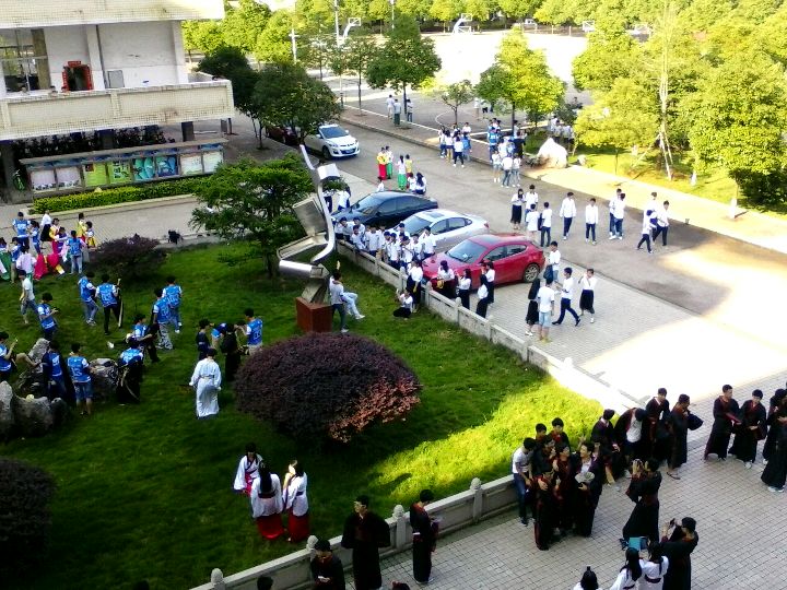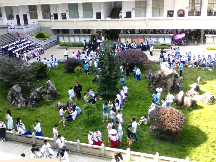 今天高三的前辈在拍毕业照,班服超惊艳的(๑•̀ㅂ•́)و✧有汉服有韩服有学生装有中山装(就是日本初中生穿的那种黑色的)有西装连婚纱都有!而且发现了好多帅哥美女,原来我们学校的总体颜值还是很高的~\(≧▽≦)/~太棒了太棒了简直棒哭!!!!!!!!