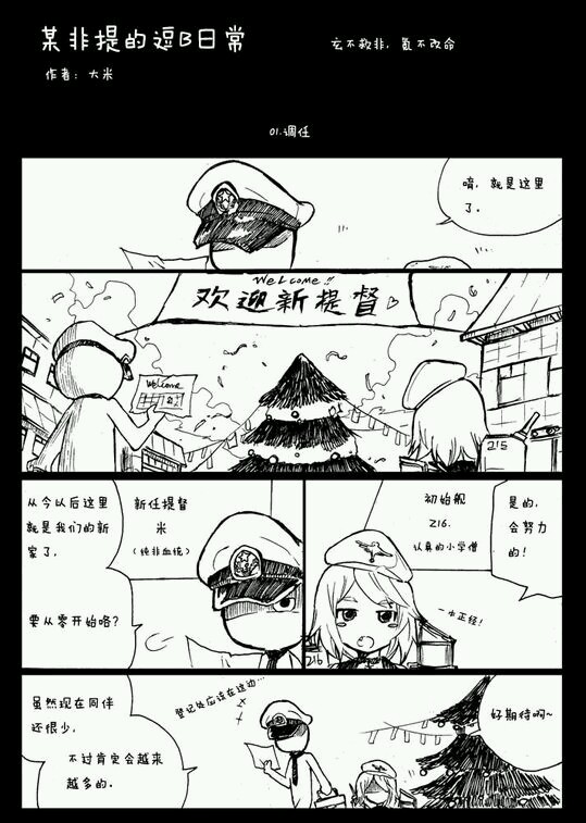 这个漫画是百度贴吧“有妖气的大米”所画的一组关于战舰少女的同人漫,讲述了一名从舰C转过来玩战舰少女的黑人提督的每天的喜怒哀乐事。其画技与情节设定都算得上是不错的,并且其真实程度(很多提督大人都能在这个漫画里找到自己的影子)足矣作为所有新人提督的教科书。