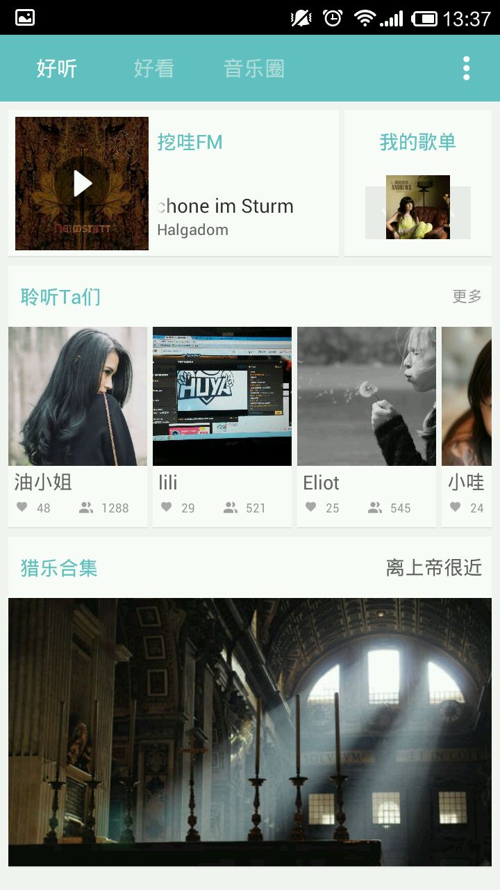总得来说这应用做得还是很有惊喜的,感觉很小众,格调很高。里面有些文章,有些音乐合集。文章小咪没看,不过音乐确实很好听,推荐给喜欢听歌的汇友们。