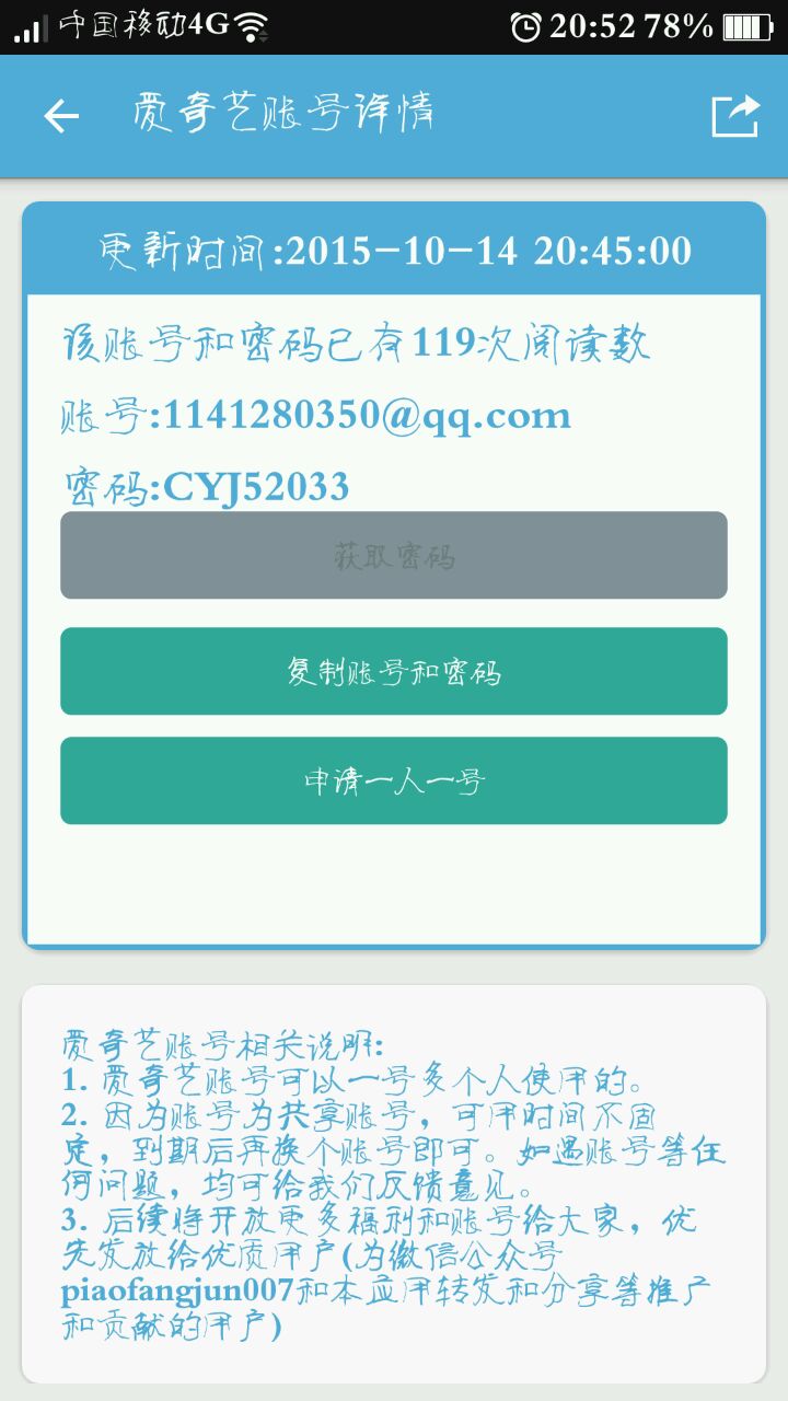 2015-10-24 [有回复] OPPO Find 7免费发送爱奇艺VIP帐号