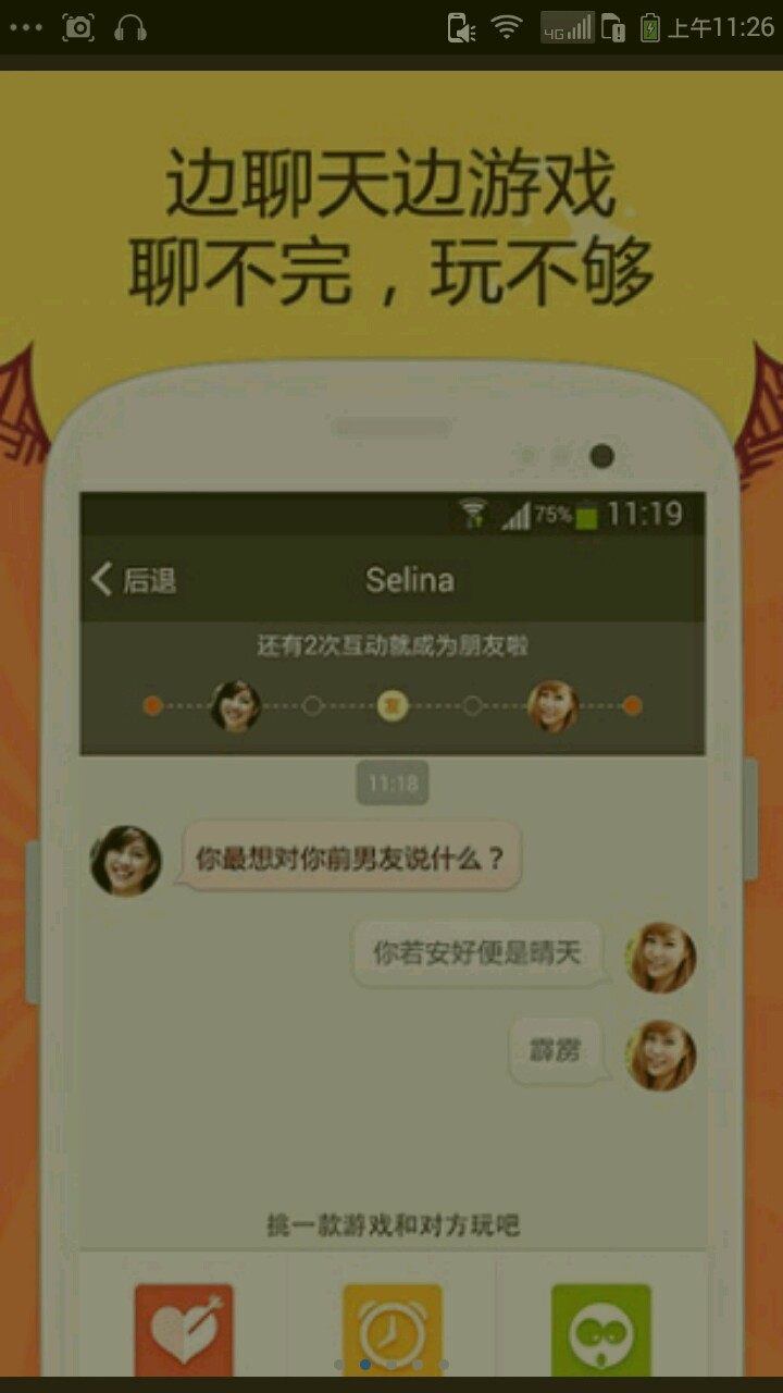 你还在为qq与微信上单调的社交方式感到抓狂吗?试试这款软件,它让社交变得更有趣,它可以让你更轻松的找到话题,更快的与异性打交道,它让腼腆无处可逃!心动的朋友赶快试试吧!