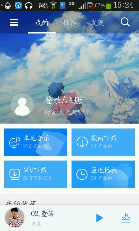 软件美化了好多,变得更好看了,只是在线播放是占近一百的运存,本地播放占45左右,音乐库没什么改变,歌单还是那样一般,对于我这类喜欢听二次元轻音乐的童靴来说,没有听到很温馨的二次元音乐是很不开心的(ฅ>ω<*ฅ),天天的动漫类的歌单很少,而且很一般,基本来说不算很用心分类,也就按动漫把歌曲随便打包而已。而易网云音乐倒做的不错,在线听占45左右,本地占50左右(本地听反而多让我匪夷所思),没有天天那样好看,简单,但很贴心,有自动清除缓存的功能,歌单也不错,二次元歌单很多,而且找到很多喜欢的二次元音乐,歌单做的很用心,东方的音乐很多(这是要逼我转易网的节奏吗┻━┻︵╰(‵□′)╯︵┻━┻)