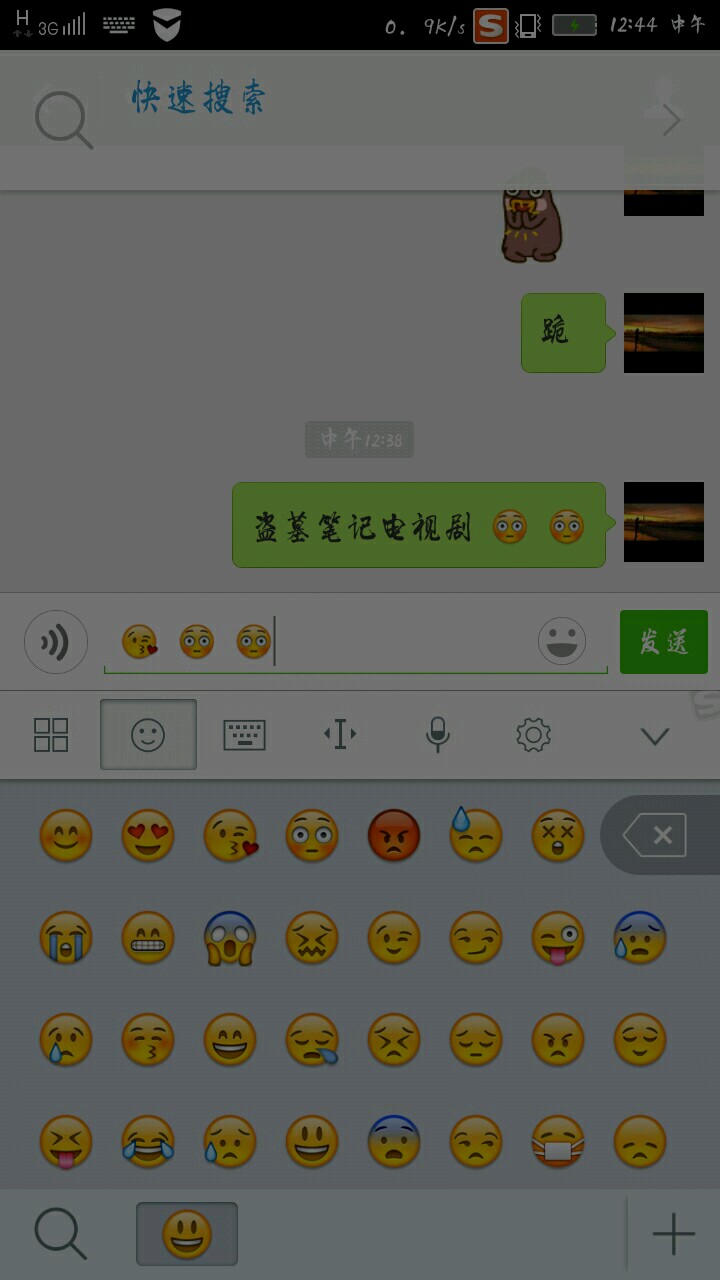我打了俩表情后屏幕最上方出现搜索,以前从没这种情况,点击后链接到UC浏览器,打开了一个不知是啥的网页…