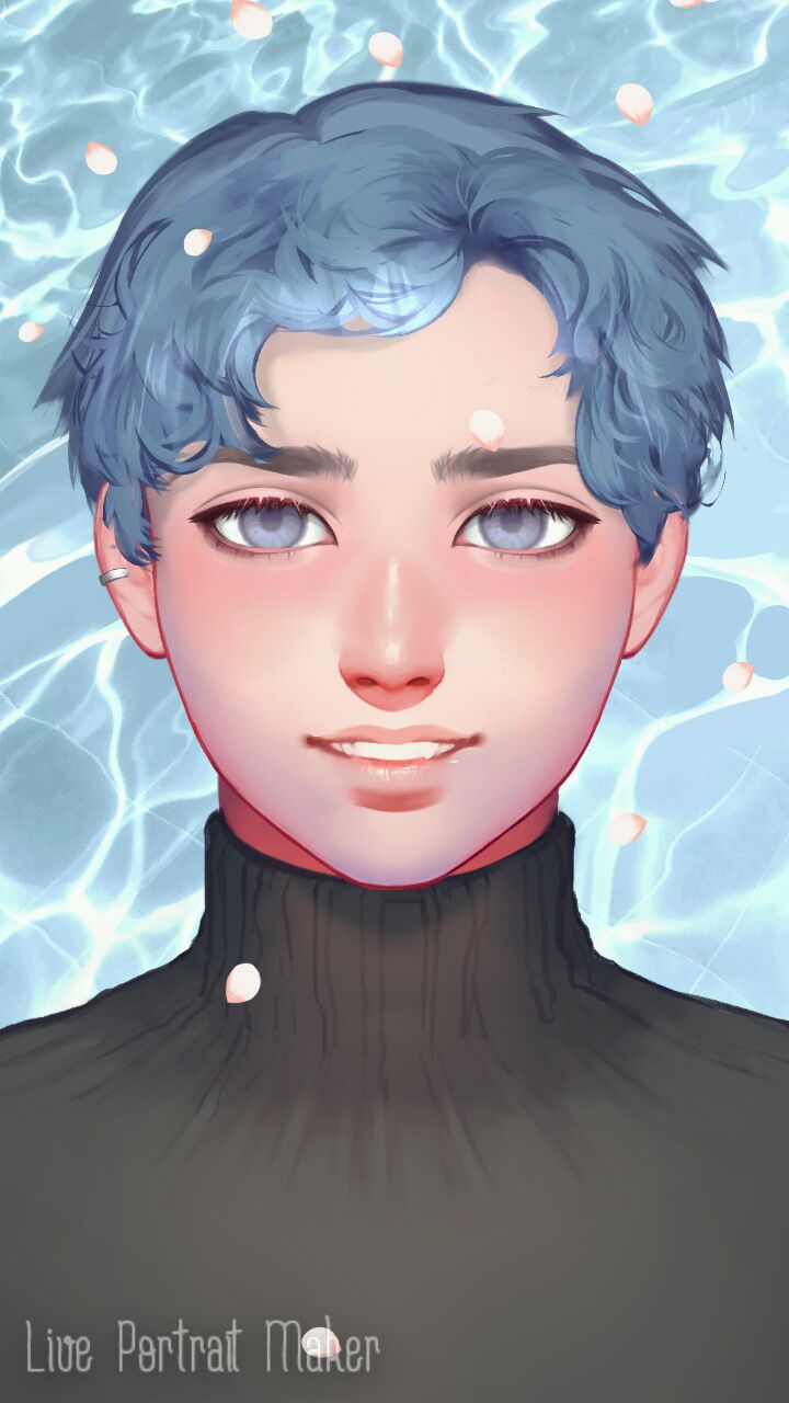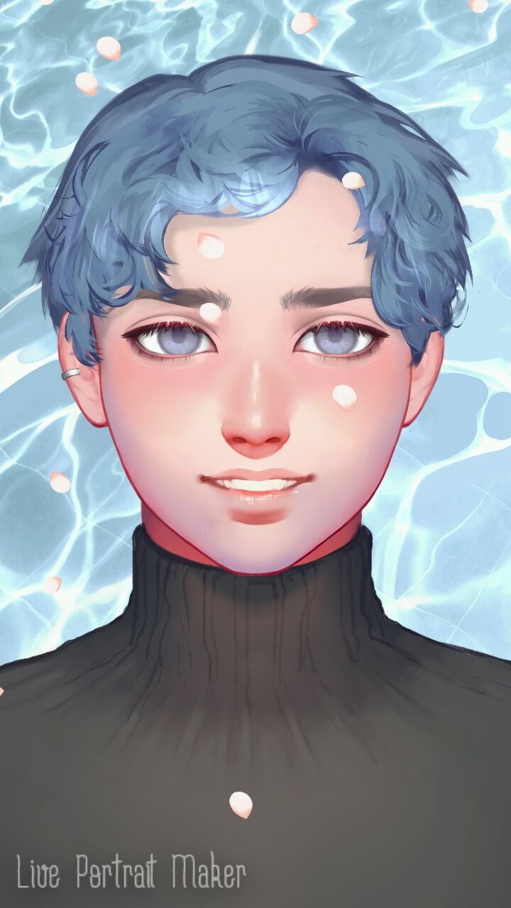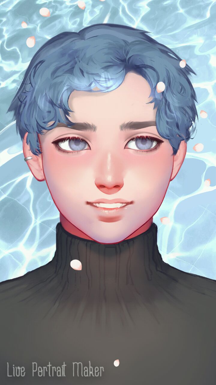 人物设定:我非我。在现在这个社会,我们每个人都会强制带上一个面具。总是以笑脸相迎,可是谁用懂得笑容背后的心酸故事。波纹背景和海蓝色发色以及发型给人以海风清爽的感觉。白里透红的脸色和漏出虎牙的微笑给人以亲近的感觉。而金属耳环则象征不向困难屈服的坚定决心。而黑色的衬衫包覆脖子,象征自己对社会不公平的种种排斥和厌恶,和对自己的保护。