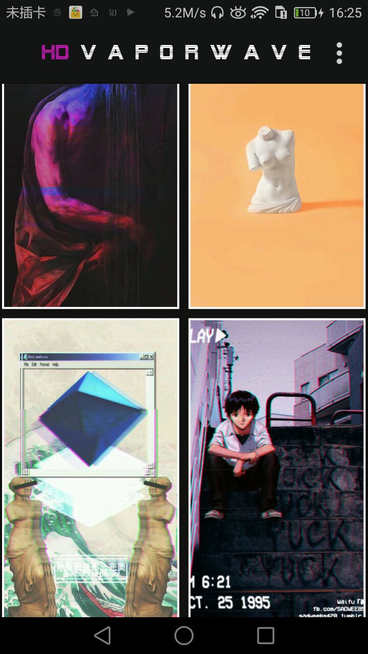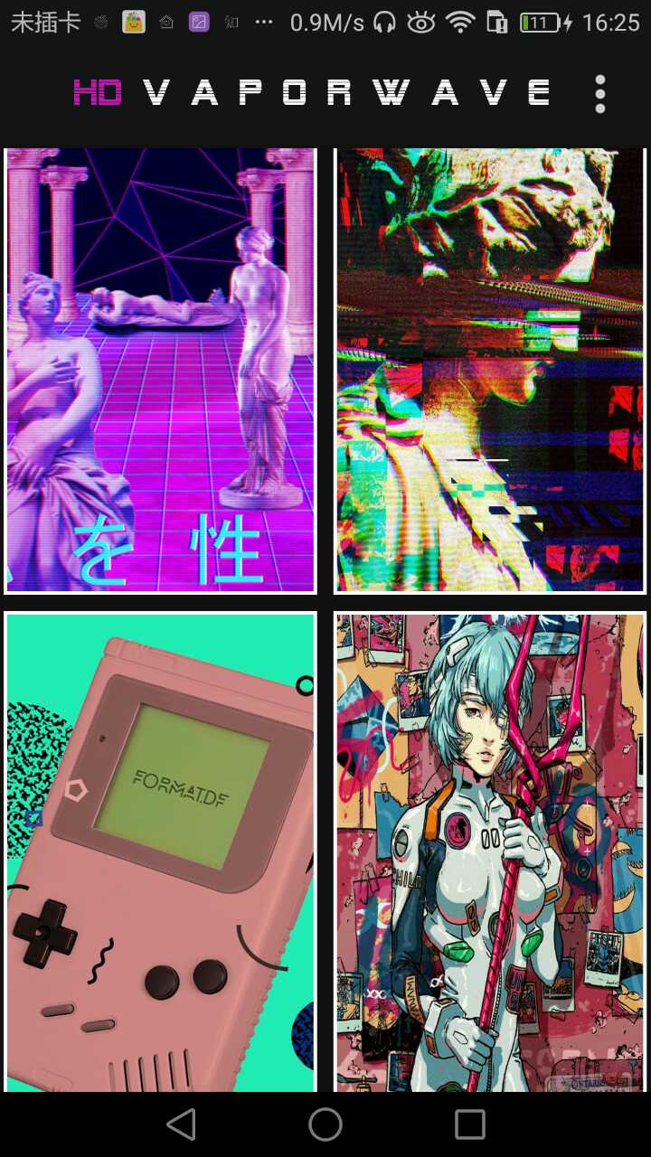 •优点:试用了几个蒸汽波壁纸软件,这个相对素材最齐全,全静态壁纸,格调足够,所有壁纸皆可于app内设置成爱机桌面,也可下载进图库自留.