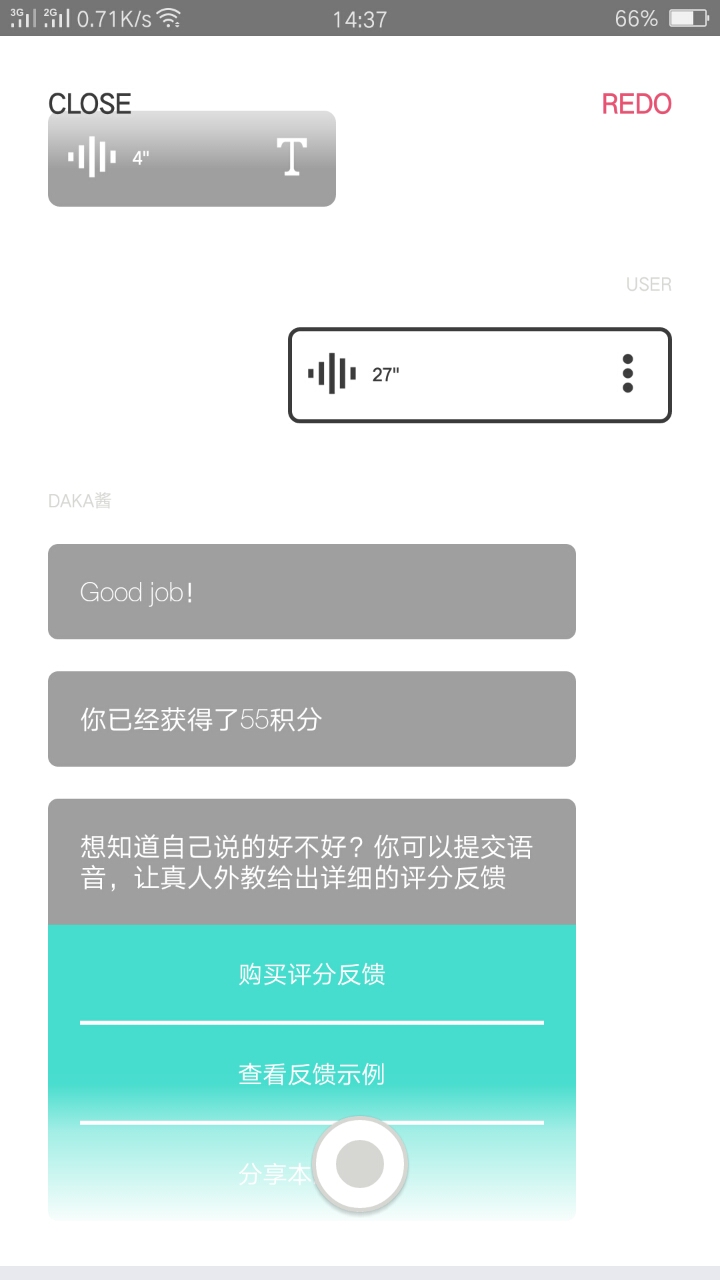 我用过很多很多练习口语的软件,大部分都是照着原稿念的,这种软件可以改善发音是肯定的,但是因为是照着读,所以相对来说简单很多。DAKA需要自己去想,对于很少开口说英语的人来说还是相当有难度的,我自己说的时候也会磕磕巴巴不知道说什么。这个软件适合英语有一定基础,但找不到练习对话的partner,如果想要真正提高自己的发音和表达,建议还是下载一款纠正发音的软件,然后每天坚持用DAKA。