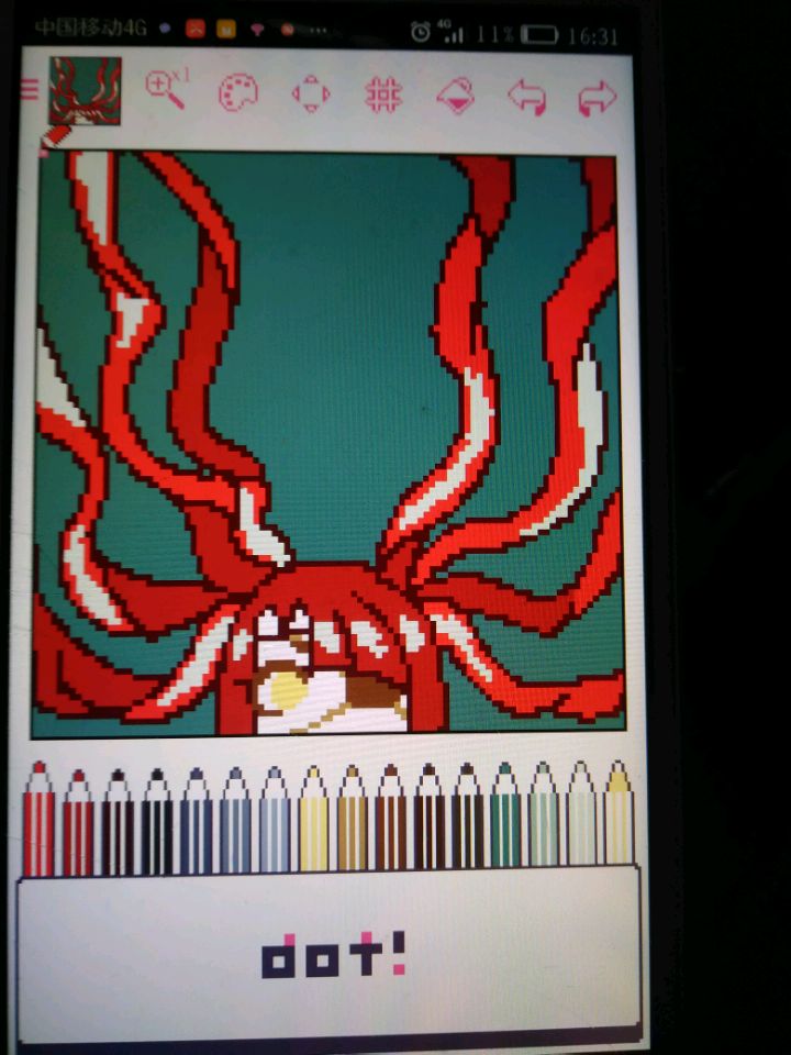 2018-04-02 [有回复] NX589J拿之前给企划画的来充个数(。)缺点是只有正方形画布和没有图层!以及在笔触方面dotpict更适合细节但是那边色卡太少……八位元选色真实爽图了,弹丸风完全够了!放个dotpict界面对比一下()