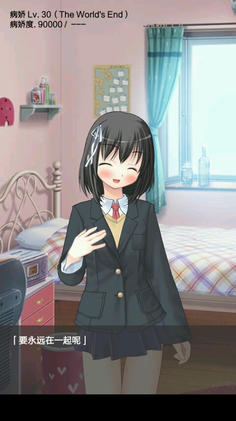 用了将近两个小时的时间,通过了此游戏~因为是病娇控( ˘•ω•˘ )所以两个小时都不是事,我来总体说一下这个游戏吧,个人认为这个游戏是养成类型的(ノ・ェ・)ノ。但游戏本身却很考验人的耐心,随着好感度不断的上升,想升下一级会变得越来越艰难。但苦有总有甜,随着姐姐的不断黑化,她的表情和语言都变得越来越奇怪。这也就是整个游戏当中的精华部分,这个游戏总共等级是三十级,当你升到30级以后 ,就意味着你通关了。(完)因为我的文平不好,所以我只能说这么点 ,实际行动还是靠你们自己吧!