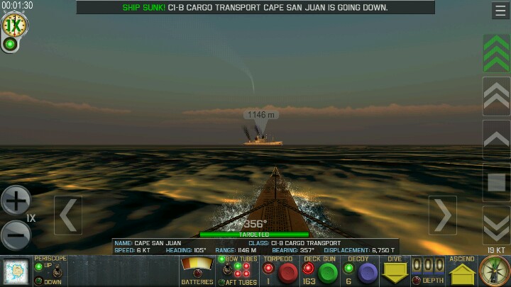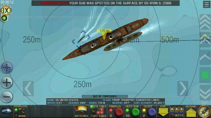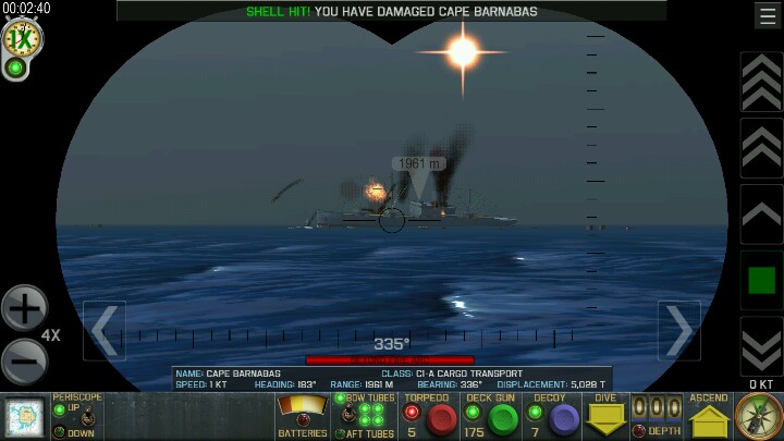 这款游戏内容也非常简单,就是你操纵一艘德国U型潜艇,发现舰船后决定是否把对方击沉,成功后会获得分数。分数会累计,知道你的潜艇沉没,然后形成最高分之类的。