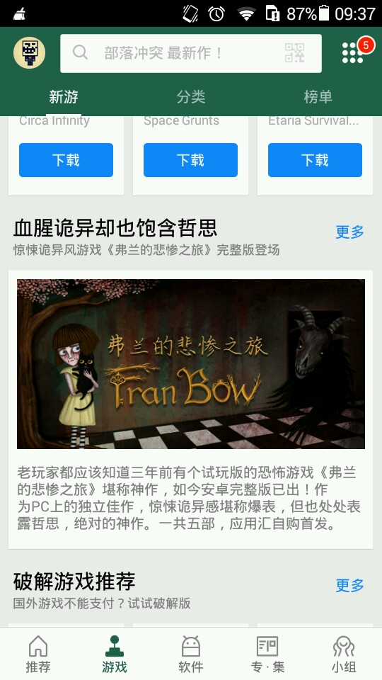 今天打开新游速递差点没被吓死。。这一片。。好吧,看到老朋友弗兰了,果断下。。。。可是吧,,下完了之后总觉得哪里不对劲。。我明白了,是图标啊!吓死人啊!连在一起更吓人啊啊啊。。怎么办(⊙o⊙)。。。。于是我只能删掉了。。真的很吓人。。细思恐极的吓人。。。。虽然删掉了,但是我每一章都打开玩了半个小时。。已经灰常不错啦对吧✧٩(ˊωˋ*)و✧。。。。