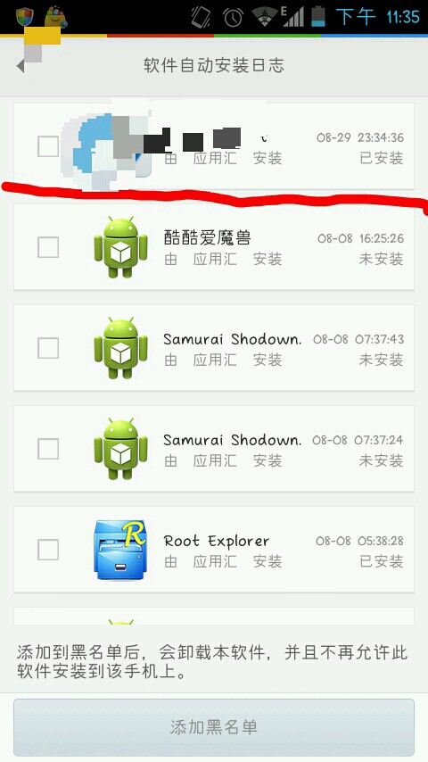 我想是有安全软件的原因,比如应用汇在自动安装的时安全软件就会认为有流氓软件恶意自动安装软件,所以……一般安全软件授权root后权限挺大的,一般应用干不过他的!比如我这……都每次来着安全软的时候就只能安装一个应用,安装第二个的时候绝对出现你那种情况……