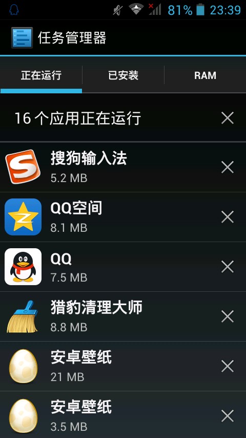 教你一招,系统设置,管理应用程序,正在运行,然后点右下角竖着的三个点,选择关闭所有任务,比什么安全软件清理的都好使。