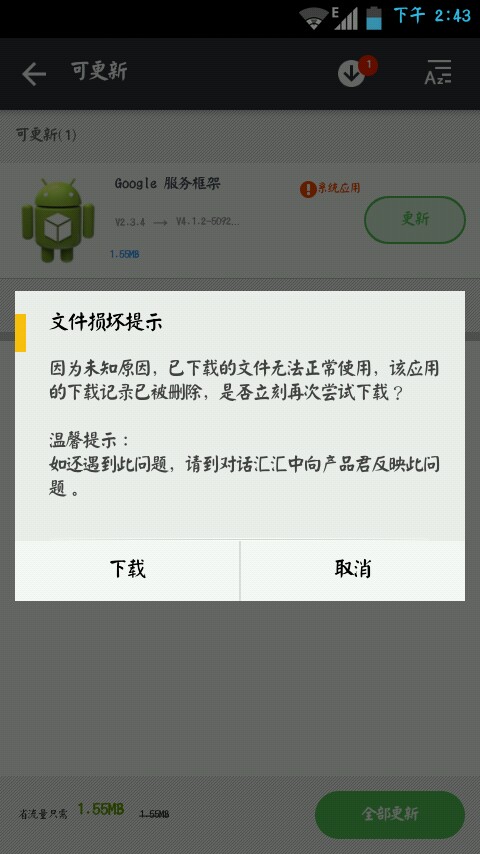 省流量更新表示安装包解析错误,更新谷歌服务框架时出现的……