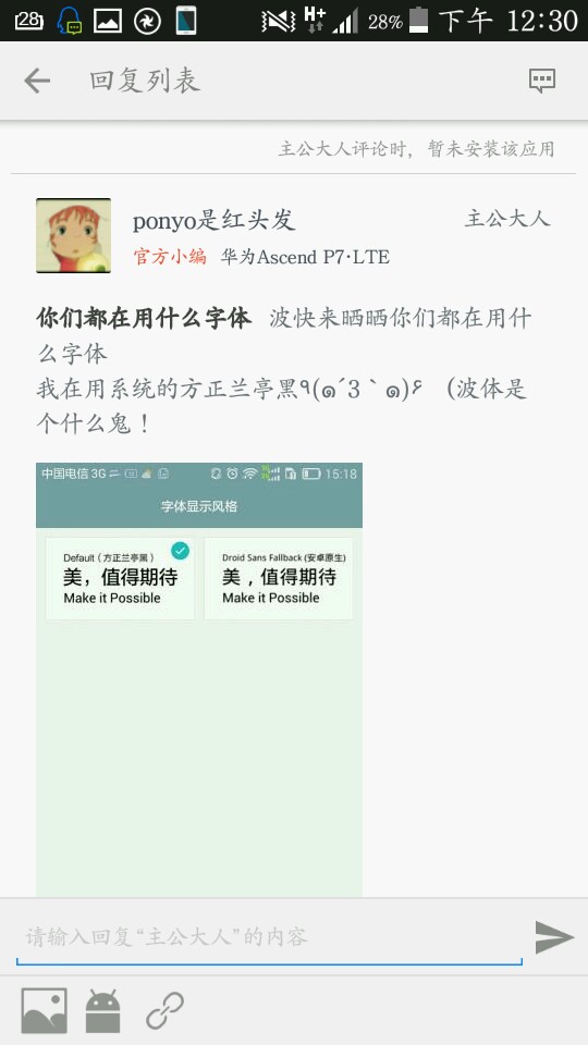 2015-01-28 [有回复] 华为Ascend P7·LTE你们都在用什么字体