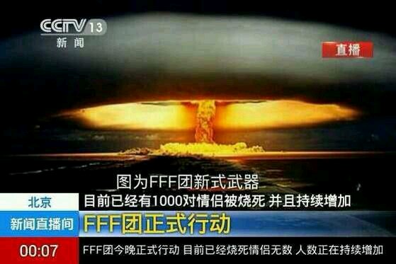 “FFF团万岁!火刑架万岁!情侣什么的都去死吧!性别不同怎么谈恋爱!天下有情人终成兄妹!”