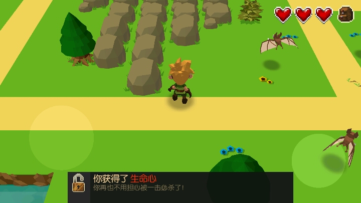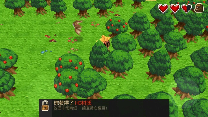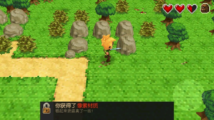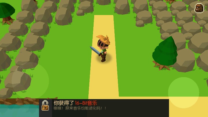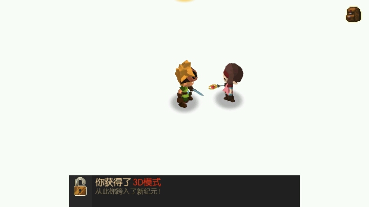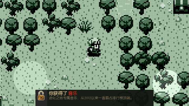 游戏开始是最早的8位机,记得以前的gameboy就是这种。通过寻找箱子可以解锁风格,即进化的关键点。
