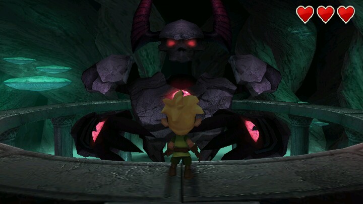 最后boss三形态,第一形态不要被它两只胳膊扣中间。它会旋转,要逆着他旋转方向跑,它手臂落下了就打胳膊上的眼睛。两只手打掉了就第二形态。他会喷火同时旋转,顺着他跑,但不要跑太远,听背景音乐响五下喷火停止,赶紧去打胸前眼睛,砍一刀就反方向跑,去砍他身后弹出的粉球。然后第三形态是他真身,比较简单,始终跑的离他远点,他扔3火球就躲开,扔绿球就面相他把绿球砍回去,然后结局了。