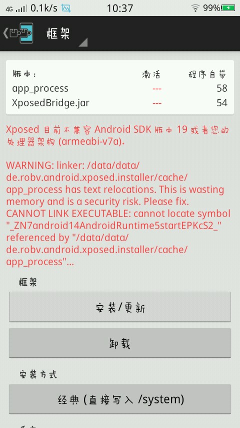 点卸载。再点安装试试。如果不行,再去装个BusyBox