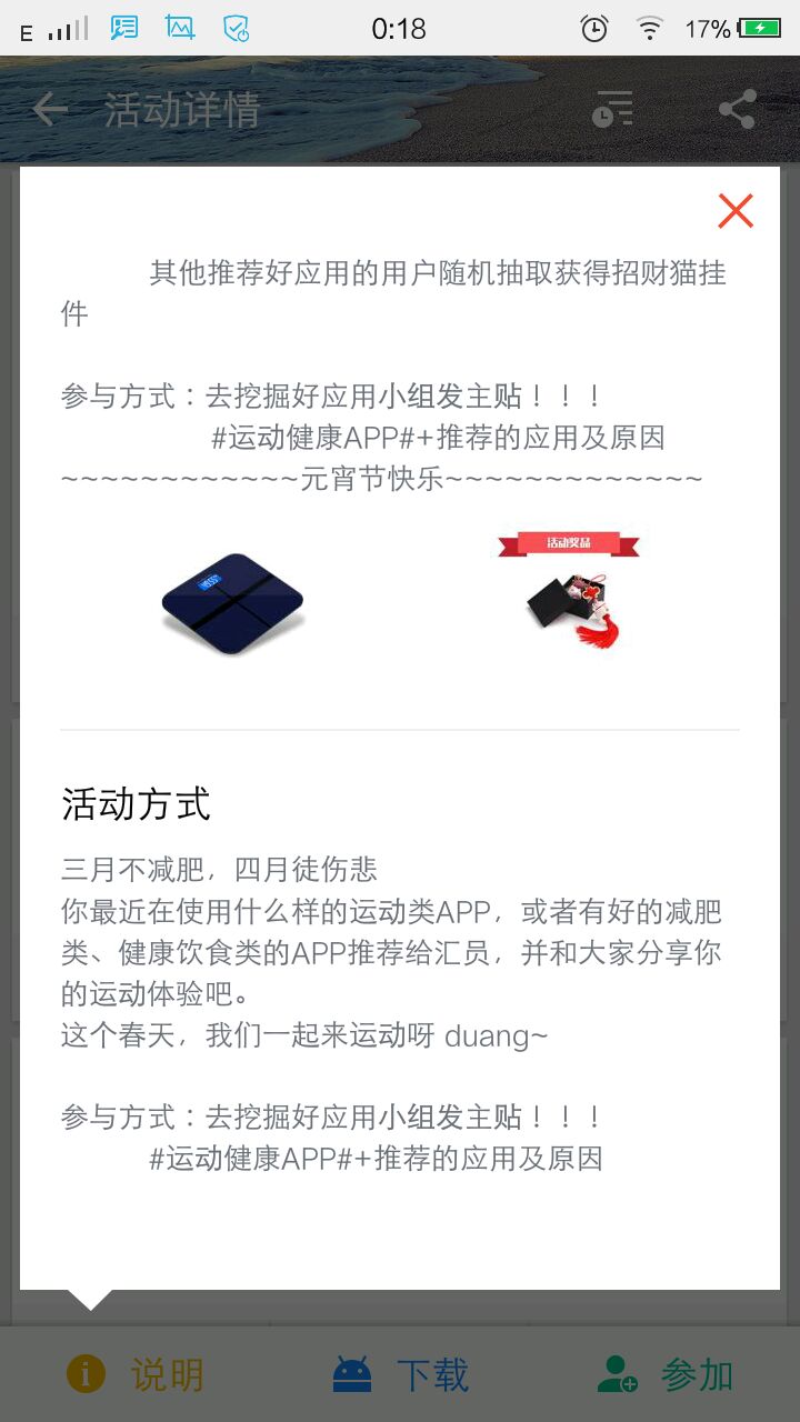 你参加的推荐运动APP获奖咯,恭喜恭喜(。・ω・。)ノ♡加我QQ41390332领取奖品哈 详情见活动详情。