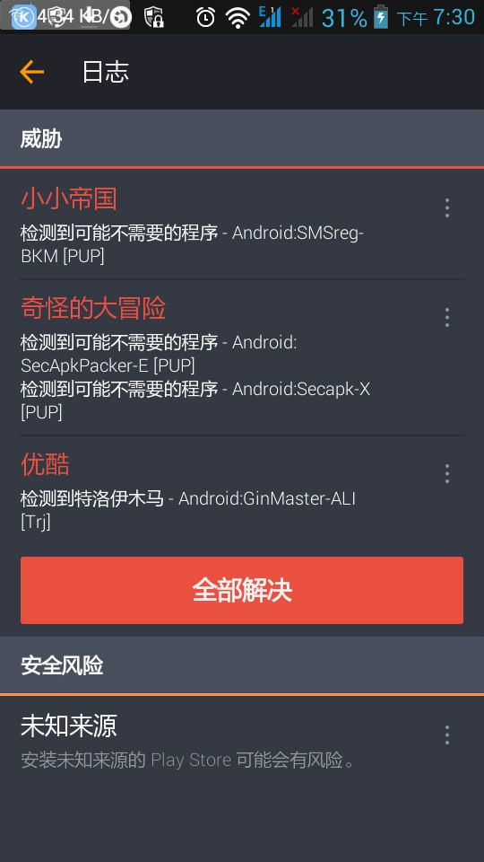 我刚刚安装了安全软件avast检查软件,结果说优酷有特洛伊木马病毒,不敢相信,我可是用优酷用了很久。如果优酷真的有病毒那我不是一直被蒙在鼓里?或者是avast检查错误?可avast可是国际级的安全软件啊!如果真的是优酷有病毒,那希望汇汇的小编关注一下,或许能加强应用汇检测软件安全的能力!!!