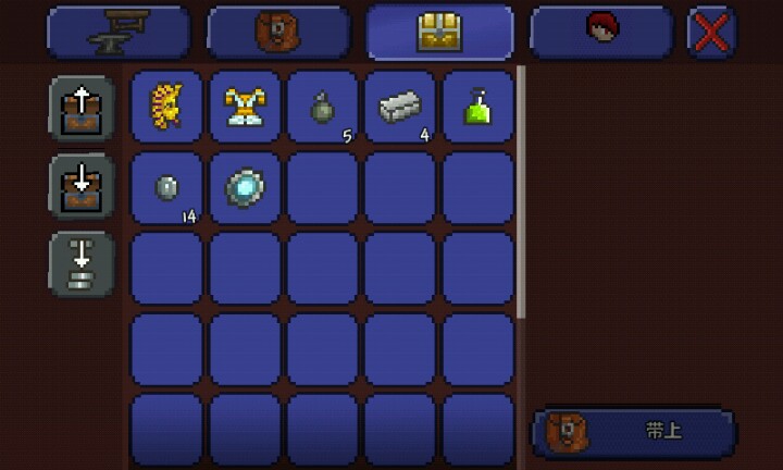 好滴,,今天就先更新,【这是楼主((╯з╰)嘿嘿,这可是我亲身经历几个重新开始总结的可以好好体验的经验噢!】,泰拉瑞亚肉山前新手入手攻略全过程(no.1:我才来)作为一个新手,刚刚进入游戏很难发展起来,但是,我今天告诉你几个小窍门,首先,先在地图左右走过来一圈,切记(⌒∇⌒)(遇见地洞,千万不要手贱进去,(╯з╰)不然你会死的很惨的!)看见宝箱不管什么全部拿走(对了,前期刚入手的时候,绳子很实用的)然后直到走到海边,带好药水,开始拼命潜水,看见水宝箱里面有潜水管的时候,就用,不然你是走不到头的,看见水母跳过去,水母也是很屌的,不信你撞撞看,打她很费潜水泡的,然后直到走到有,如果你来的路上找到墨镜的话,你就可是平安的回家啦,否则,你只有立下人生中的第一块模板啦,如果你在世界里面发现啦金字塔,(╯з╰)(看脸的时候到了,金字塔里面箱子有三种东西,前期极品,飞毯,瓶中沙暴,还有前期极品时装一套,我想大家都希望要前两个,这就是看人品了)开荒工作完毕后,整理一下背包,吧材料放箱子里面,看看你背包里面有没有前期神药(╯з╰)(重力药水)没有也不要担心,因为重力药水地面上很少见的,她在神庙箱子里面很常见,地牢黄金箱,丛林黄金箱也可以找到,如果你真的人品爆表搞到了,那你的人生就安全啦!好啦,重力药水现在先不说,到后来我再说吧,整理完之后,开始冒险增加实力吧,带上一些生命药水,墨镜,((⌒∇⌒)如果忘带啦,那你只有客死他乡啦!)火把,一些木质平台,开始潜入地下,开始地下工作,在去地下的时候,看看你手里有没有炸弹