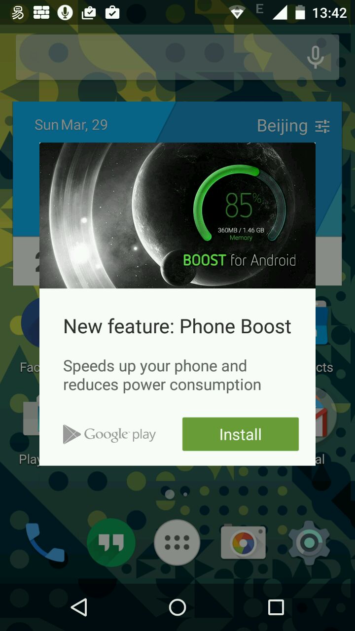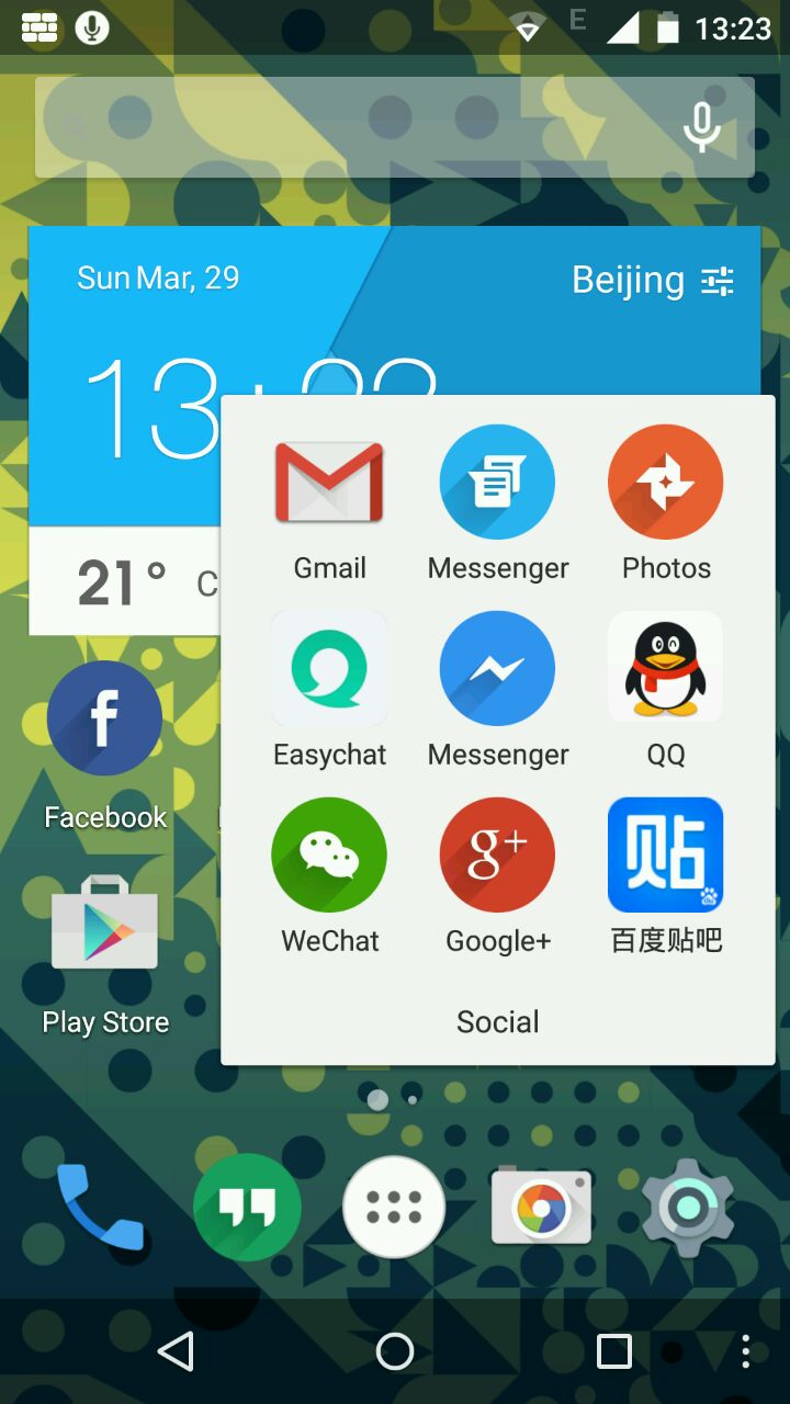 现在的国产启动器都是以智能和轻量化为卖点。app智能分类更不在话下。。。这是启动器自己给我安排的桌面布局。。当然那个天气widget是我自己的。。它给的数字时钟widget存在感太低。。当然这不是重点。。为什么要把短信app给我收到social文件夹!反而把hangout放到左下角。。我并没有用hangout接收短信。。这么布局有些网上的标准布局风格啊,在智能布局的时候优先级算法没弄好。。。-_-是不是等用的人多了会搞搞智能学习之类的?不过现在继续负分。。