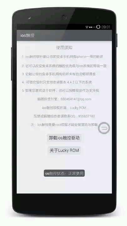 iOS触控1,ios触控软件能让你的安卓手机拥有iphone一样的触控2,它可以改变安卓系统的触控优先级与ios系统的等级一致3,它能让你的安卓手机拥有前所未有的流畅顺滑度4,它能让你的安卓系统变得非常流畅和顺滑5,支持一键安装ios触控驱动,支持卸载驱动