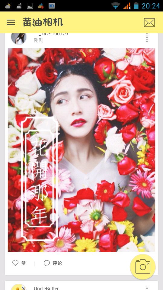 里面文字加工和字体简直好看爆了爆了还有很多作品简直好看爆了爆了可以下载字体啥的最重要的是可以用qq登录不过呢加工之后就是图片有点模糊怪不得名字叫黄油相机不过试用5分钟感觉很棒大家快来下载哇咔咔黄油相机棒棒哒大爱大爱阿不过刚刚加工图片好多花好多花啊@_@