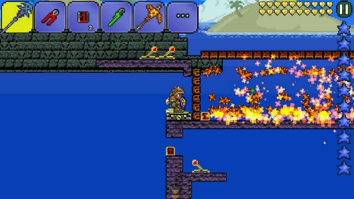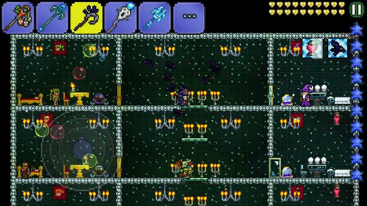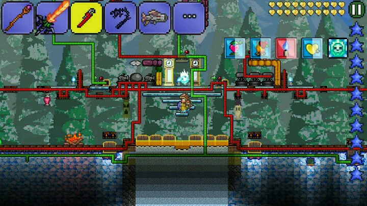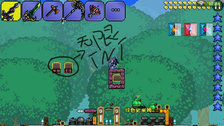 南瓜月陷阱图开始更新了23333南瓜月最难受的就是时间不够了,现我大图特(☆_☆)来解决大家的问题。这次先说加快打boss的速度后面会说明清理小怪的速度。我们先设置出无限tnt,就是利用tr的一个特点,箱子下面的物块是无敌的,所以TNT会爆却不会消失。是一个bug。而设置出无限tnt后,就是促动无限tnt的时候了。相信很多人都习惯使用一秒延时促动器,不过对于无限tnt却不够,一秒对于无限tnt来说太慢了。所以有了第二幅图的蝙蝠促动加史莱姆促动。基本可以每秒促动十几次。反正算不清,大概就是那么多次吧。这种无限tnt极大程度的加快了刷boss的速度。以提高南瓜月总波数的目的。这可是纯手打,对于我这种玩游戏都喜欢挂机的懒人已经不可思议了23333卖萌求赞\(≧▽≦)/