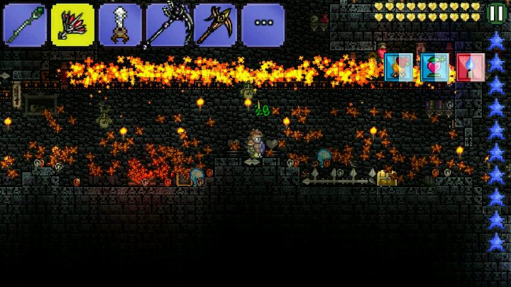 附图,南瓜月陷阱图。上面解释了如何加快弄死boss的速度。这里就来说说小怪。小怪有时候比boss还难搞定。刷怪速度不够快,成了大问题,所以我用了刺球陷阱。但是单单是刺球陷阱还不够。