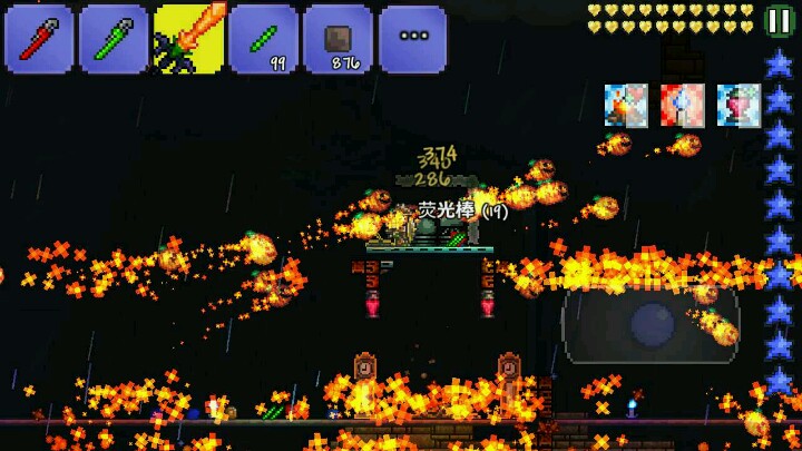 于是乎我使用了南瓜神教(南瓜神教必须要有无头骑士之刃)用无头骑士之刃攻击雕像怪,刷出南瓜头,这就是南瓜神教。