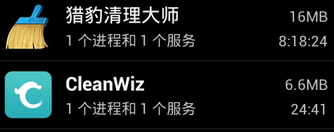 这软件能换肤(就换个颜色),简约没那些花哨的壁纸,毕竟这是一款清理APP、我喜欢~图标和快捷式上我个人认为是比猎豹好看,特别是那快捷式。内存占用上与猎豹对比(如图),小过猎豹。哦对了说下,在清理上大家用过猎豹的都知道猎豹点击清理按键后会滚字幕一样逐个清理甚至有时会意外卡死,而CleanWiz在点击清理后马上就显示清理成功⊙▽⊙!好腻害耶!(虽仍搞不懂他是怎么做到的~可能是视觉动画上让你觉得它清理完了然后再后台默默清理~zZ)。强烈建议如果还顺眼的话就下载来用用看咯,毕竟看我这帖子一是主观二是不全面,谢谢你们赏脸看完帖~