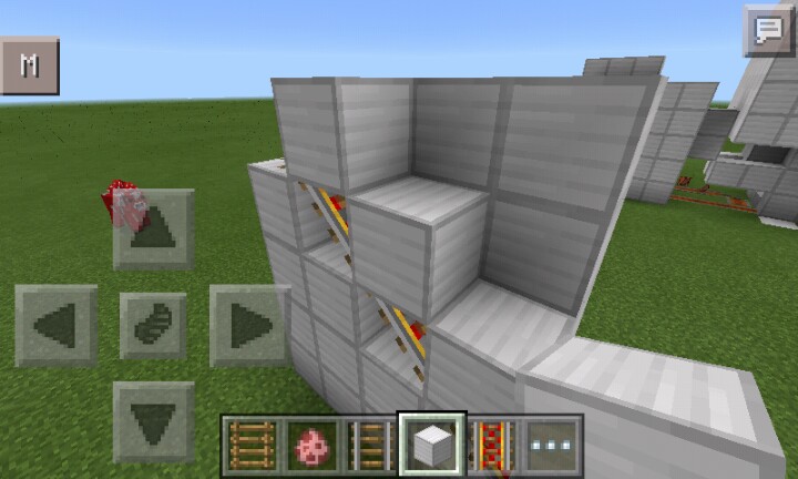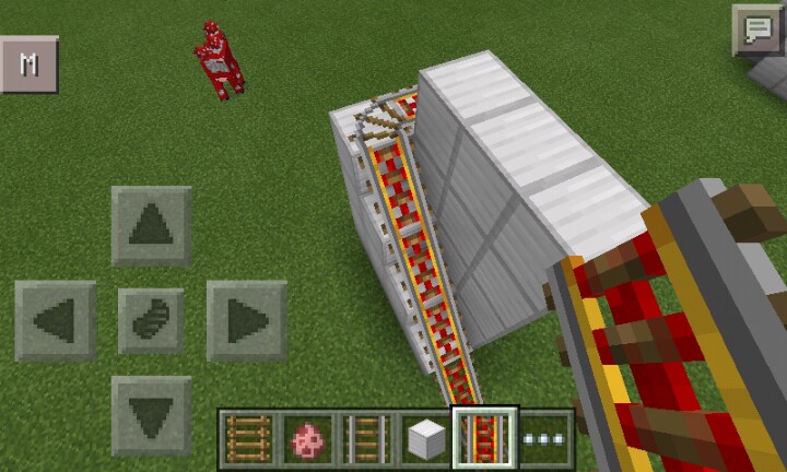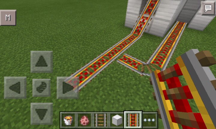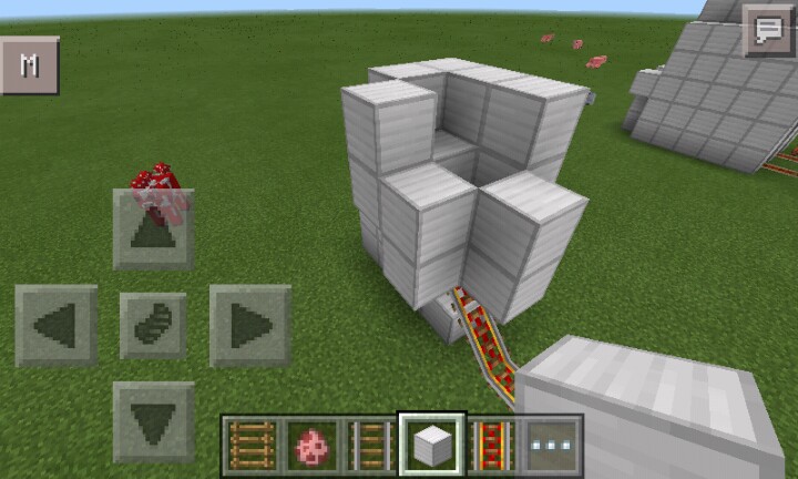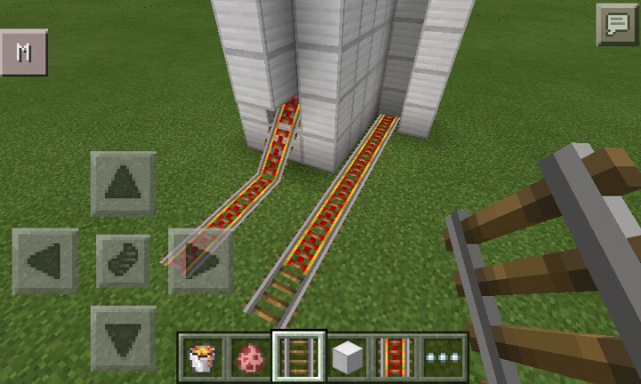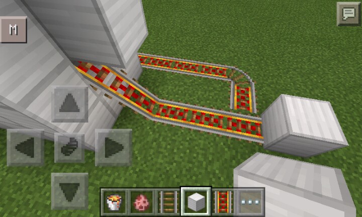 先做一个这样的像梯子一样的方块,然后铺上铁轨,再把旁边封住