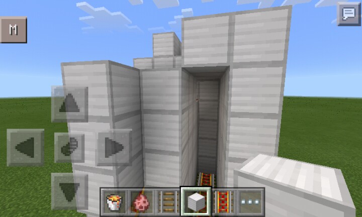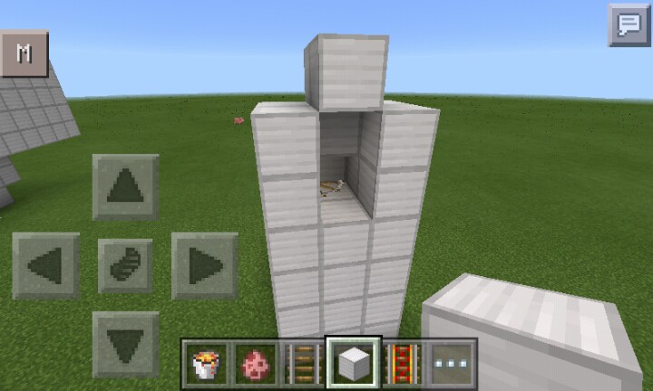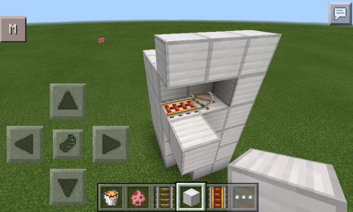 在凹字形方块后做一个垂直的空间微两格的通道,在通道底部放两个阶梯,然后阶梯上面一格放上方块,在通道上面做一个大笼子,里面放上刷怪箱,在铁轨上放上矿车,一个烤肉机就制成了!